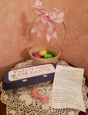 I have devised a new purpose for plastic Easter eggs that I feel would add meaning to the Easter season and that would be a relatively simple project. A dozen plastic eggs are placed in a special egg carton. The poems I have provided, telling of the events of the Easter story, are placed inside the eggs. Starting eleven days before Easter, the eggs are opened one day at a time, and the poem inside each egg is read. For instance, IN 2017 EASTER FELL ON APRIL 16TH, SO YOU WOULD HAVE BEGUN READING POEMS ON APRIL 5TH. The poems are read in the order that the events happened, recreating the days that led up to the first Easter and the first Easter Sunday itself.