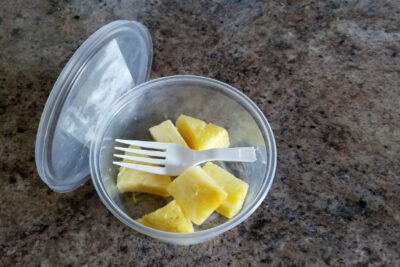 I had just bought a fresh pineapple on sale and had chopped it up. I took a few bites when I started coughing, and . . . What do you know? It seemed to work! Before I went to bed, I placed some pineapple chunks in a little plastic container, broke off a plastic fork so it would fit in the container, put on the lid, and put it beside the place I planned to sleep. When I first started to cough that night, I tried a menthol cough drop so that I could compare how well they worked. By the time the cough drop melted, it had helped a little, but not as much as I wished. Then I tried a few bites of the pineapple. As I bit into each juicy chunk, the juice squirted into my throat. It seemed the benefit was almost instantaneous. It calmed my cough right away. I laid my head back down on my pillow peacefully, probably with a slight smile on my face. Maybe next time I have a cough I’ll try drinking pineapple juice to see if it works just as well.