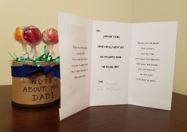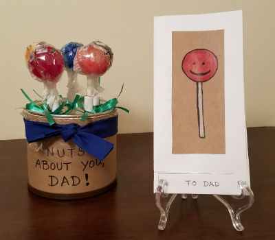 Dads, this is for your kids to know about and for you to find out about later, so don’t you dare click on the pictures to see what the project is. This is a great time for kids to let their dads know just how much they are appreciated. This project might require some help for younger kids. It’s also a great project for older kids. In fact, I think it might even be fun for grown-up kids. IF YOU DON’T HAVE A DAD IN YOUR LIFE, you can also use it for someone who’s like a dad–maybe a Grandpa, uncle, or friend. (Just customize label and see card option #2 below.)