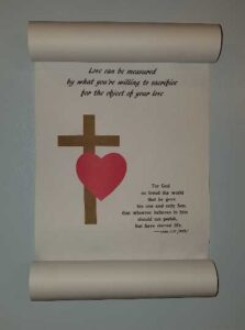Valentine’s Day is a day when we often think of the love of friends, sweethearts, and family members. But their love can’t “measure up” to the amazing love for us that God portrayed when He was willing to let his sinless Son die a cruel death on a cross, so that we could have eternal life if we believe in Him and follow Him.