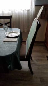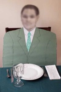 Is there someone who would be a very special guest, at a Thanksgiving dinner, a birthday dinner, or maybe an engagement celebration dinner, but won’t be present at the event? Maybe a favorite uncle or a grandma or long-time friend who lives far away and can’t be there? All you have to do is a get a blow-up of their face about 9” high, glue it to a big piece of cardboard, then cut out the head, neck, and shoulders and go all the way down to where their back would meet the seat of a chair. Draw clothing, or make it easier and more realistic by just putting a long-sleeved shirt or top on it. If you don’t have a shirt or top that fits the size of the figure, you could go to a thrift store and get an inexpensive garment.
